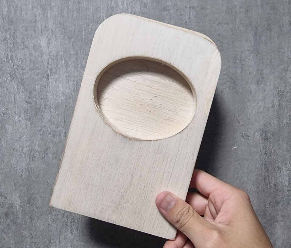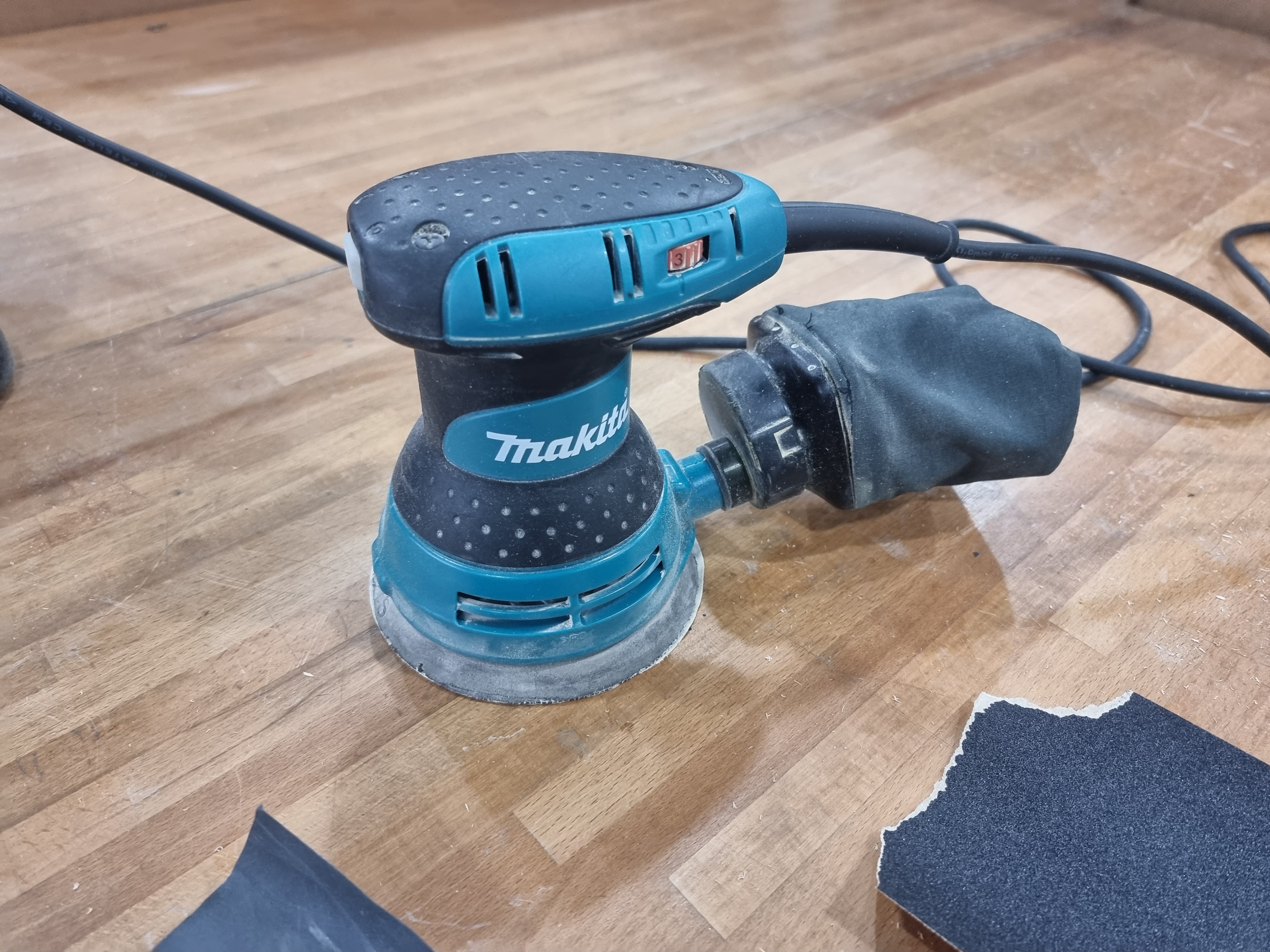 Using the orbit sander, sand the surface of the holder and remove all sharp edges on the holder