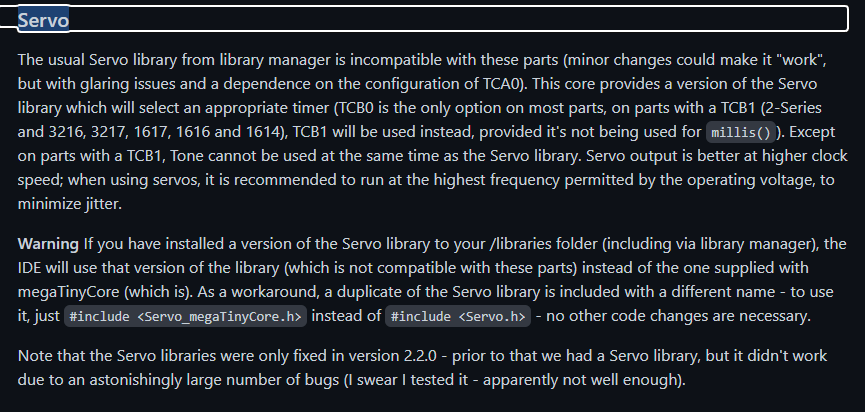 Please use #include "Servo_megaTinyCore.h" instead of #include "Servo.h"
