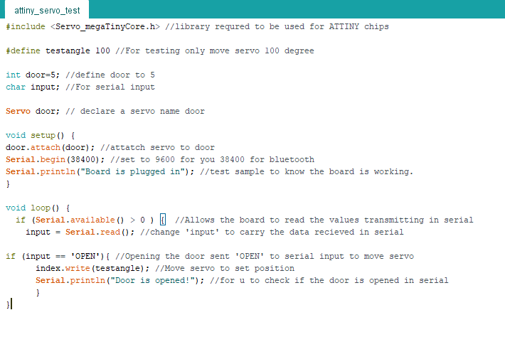 I wrote a code that allow you to test out your servo using serial commands! Click here to download the code!